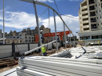時下正值高溫酷暑季節(jié),似火的驕陽炙烤著大地。高溫悶熱天氣讓人們都躲在空調屋里不愿出門,但為解決企業(yè)旺季倉儲所需空間,華燁篷房搭建團隊奮戰(zhàn)在施工現(xiàn)場,頂烈日、戰(zhàn)高溫、抓進度、重質量,堅守崗位接受高溫的“烤”驗。
