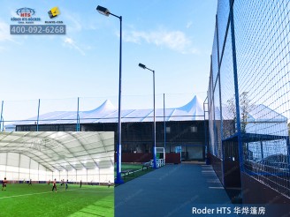 五人制足球篷房華燁篷房提供的長度范圍為:38m到42m,寬度范圍為:18m到22m。內(nèi)部無立柱,可以隨心所欲發(fā)揮球技。