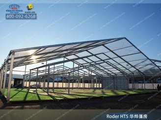 華燁大型展棚的跨度為3米至80米。由于采用了模塊式構(gòu)建系統(tǒng),可根據(jù)要求將篷房的單元距離擴(kuò)大至5米。